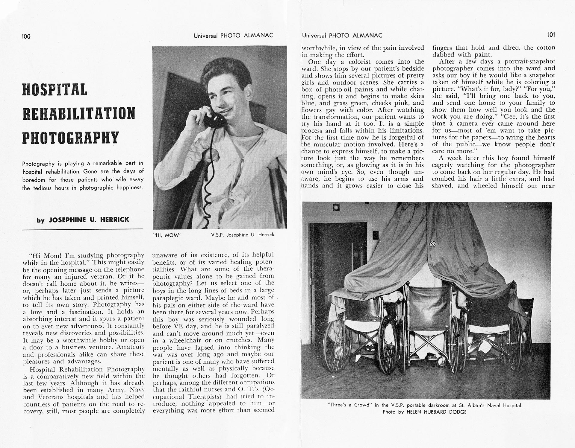 "Hospital Rehabilitation Photography," Universal Photo Almanac, 1948, Photographs and text by Josephine U. Herrick, JHP Archive