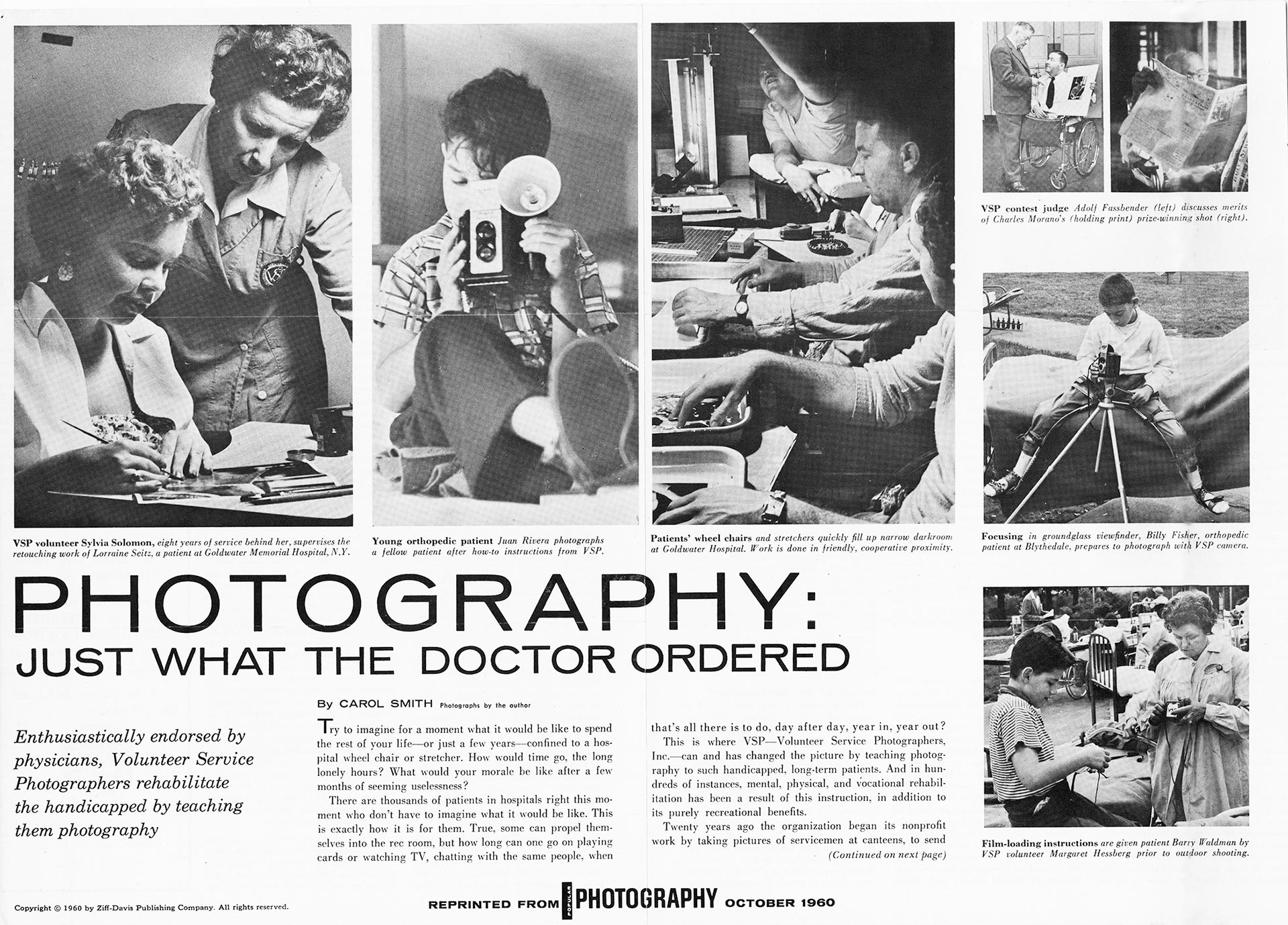 In an article for Universal Photo Almanac, Herrick explained the VSP program, explaining that the allure and fascination of photography improved morale and recovery for patients confined to beds or wheelchairs.