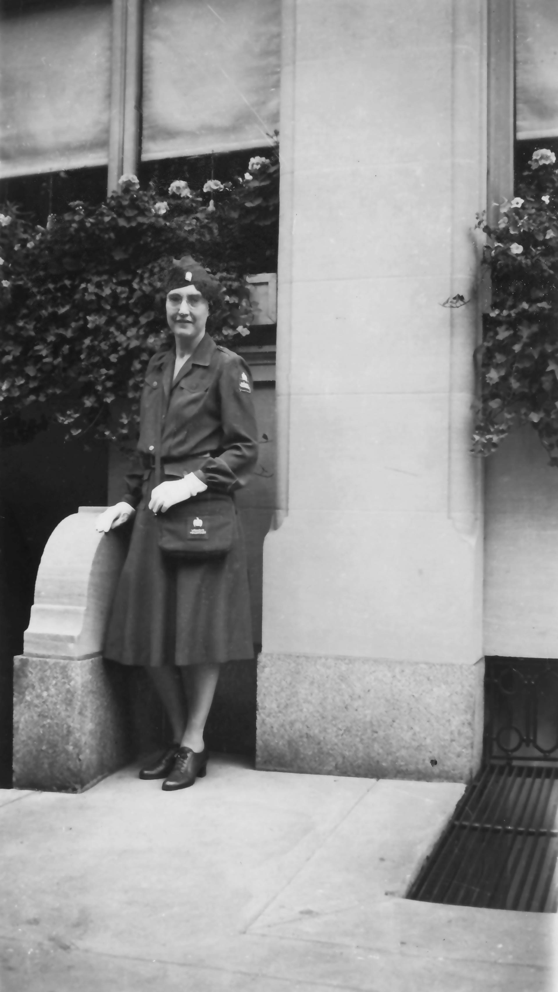 When the United States entered World War II, the American Women's Voluntary Services (AWVS) had 18,000 members who provided support services for the military, from running canteen kitchens to driving ambulances. Herrick, seen in this snapshot wearing an AWVS uniform, taught courses in "defense photography."